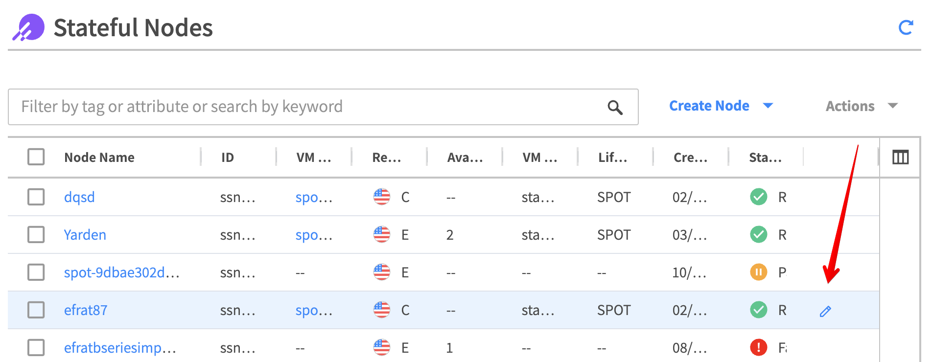 To manage your stateful nodes, in the Spot console, click Elastigroup and click Stateful Nodes.
